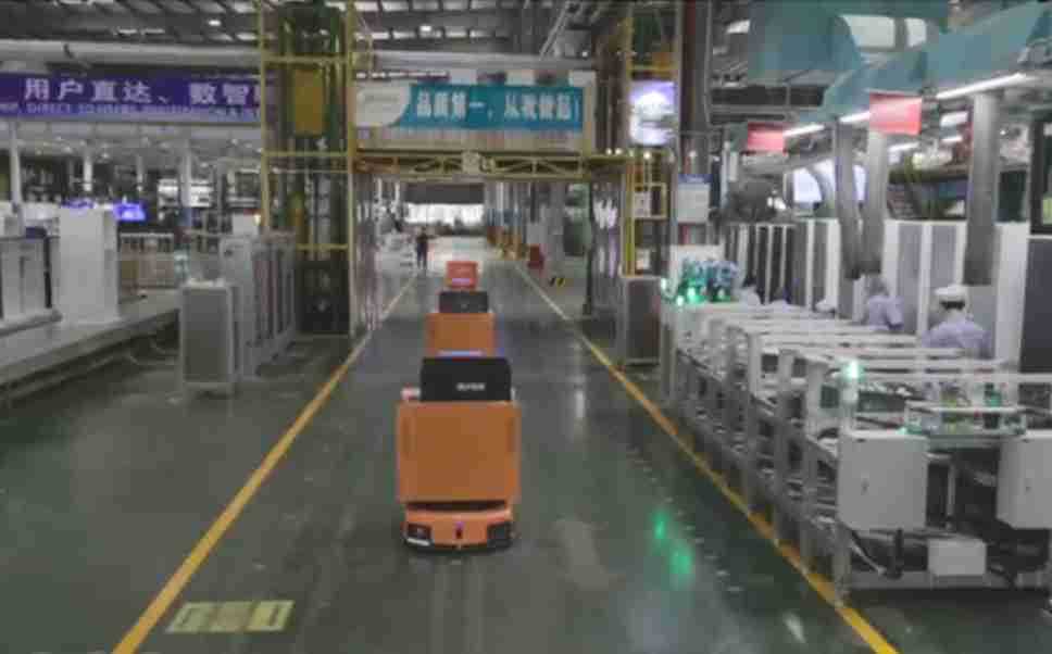 为车载冰箱物流配送打造的智能解决方案,,,包含产中物流通过潜伏举升AMR搬运至线边,,产后成品物流智能仓储,,,流程包含产中物流智能齐套入库,,,,线边安灯叫料AMR智能配送至线边,,,,成品入库、、、出库,,通过无人堆高车机器人,,,,智能仓储管理替代人工作业管理,,实现更高存储、、、、更高效率、、更具柔性化的解决方案。。。